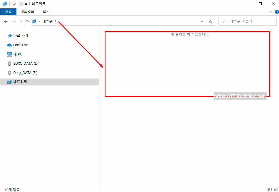 - 다음과 같이 윈도우10에서 공유폴더가 보이지 않은 경우 입니다