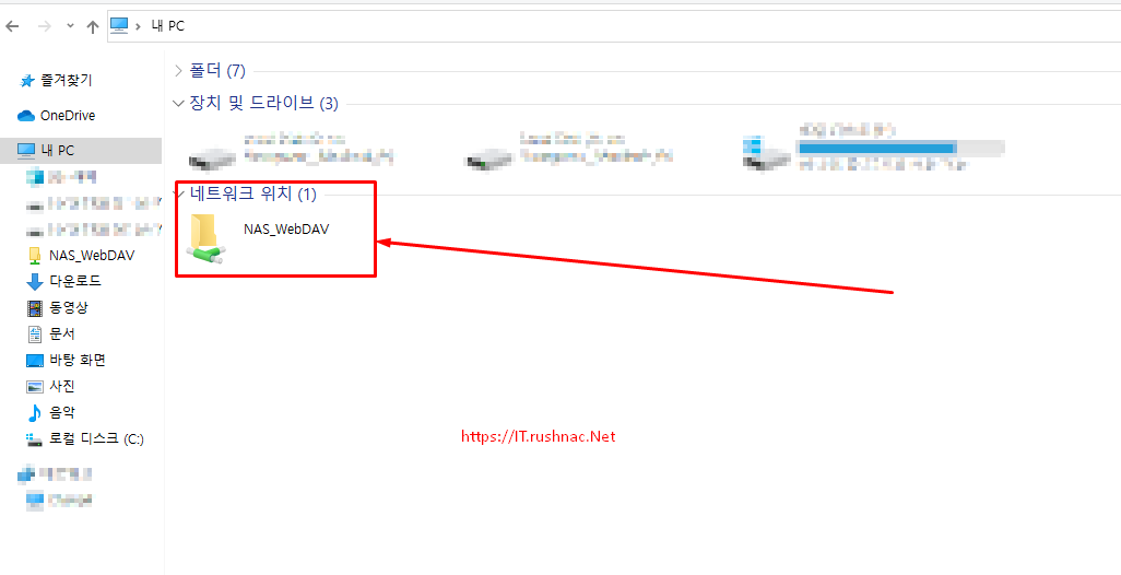 - 네트워크 위치 추가 마법사 완료으로 시놀로지 WebDAV 연결 성공 입니다.